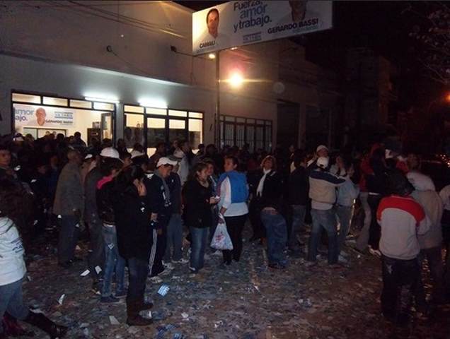 Conocidos los resultados Del triunfo de la fórmula Gerardo Bassi – Darío Zapata, los simpatizantes del Frente para la Victoria se congregaron frente a la sede partidaria de calle Belgrano casi Ángel Soto para dar rienda suelta al festejo del logro obtenido en Goya.