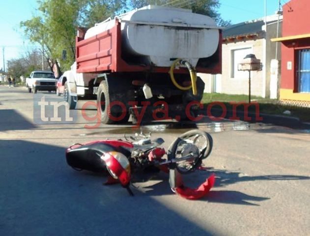 Aproximadamente a las 09 hs en la mañana del Miércoles, se produjo un accidenté entre una camioneta Ford 100 guiado por Aníbal Cuenca, y una motocicleta marca Gerrero donde iba una mujer identificada como Roció Cañete y su hijo a quien llevaba al Jardín de infantes, resultaron muy heridos al caer pesadamente, ambos fueron asistidos por Bomberos y luego derivados al Hospital de Goya. La colisión se produjo en intersección de Av. Sarmiento y José M. Soto. IMÁGENES