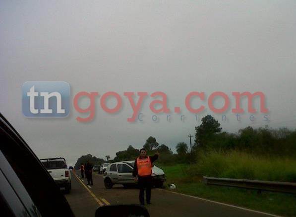 En horas de la madrugada 02,30horas aproximadamente del día Jueves una familia identificada como Rodríguez esposa hijos y suegra proveniente de Esquina con destino a la provincia de Misiones quienes se desplazaban en un automóvil Renault Clío de color gris dominio LML 170 a la altura el kilometro 764 y ½ al esquivar un trozo de caucho, muerde la banquina y despista dando varios vuelcos, como resultado queda el vehículo destrozado casi a su totalidad en tanto que los ocupantes resultaron con heridas leves, la esposa de Hugo Rodríguez, la hija y suegra fueron llevadas al nosocomio local de Goya para su mejor atención.(IMÁGENES)
