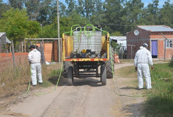 Bloqueo preventivo de fumigación y descacharrizado en el barrio Scófano donde se detectó un caso positivo de dengue