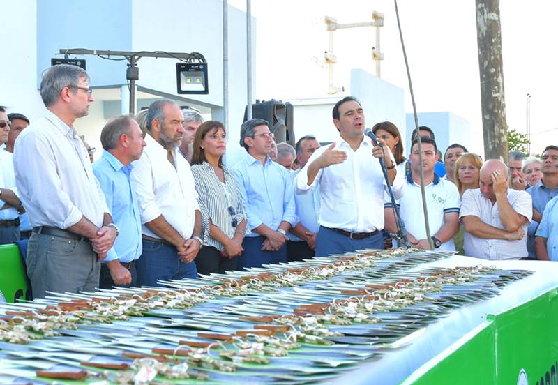 El gobernador Gustavo Valdés entregó este lunes 100 viviendas en el barrio Aeroclub de la ciudad de Goya, valorando la familia como núcleo básico de la sociedad. “Lo más importante que tiene la sociedad es la familia”, dijo allí el Mandatario junto al intendente local, Ignacio Osella y anunció la construcción de otras 50 unidades habitacionales más en la localidad, ratificando a la vez su compromiso de “hacer juntos una hermosa ciudad”.