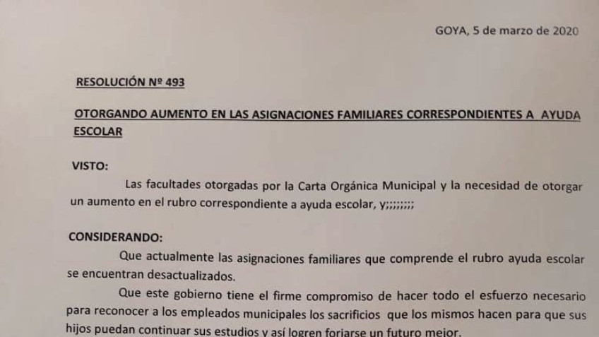 El Intendente otorgó un aumento del Monto Plus No Remunerativo y No Bonificable del 20%, que a partir de este mes será de seis mil ($6.000) pesos mensuales. El incremento fue aprobado por Resolución 489 de fecha 5 de marzo para la totalidad del personal municipal, partiendo desde la categoría uno (1) a la categoría treinta y cinco (35) inclusive y se aplicará en la liquidación que corresponden al mes de febrero y se abona a mediados de marzo.