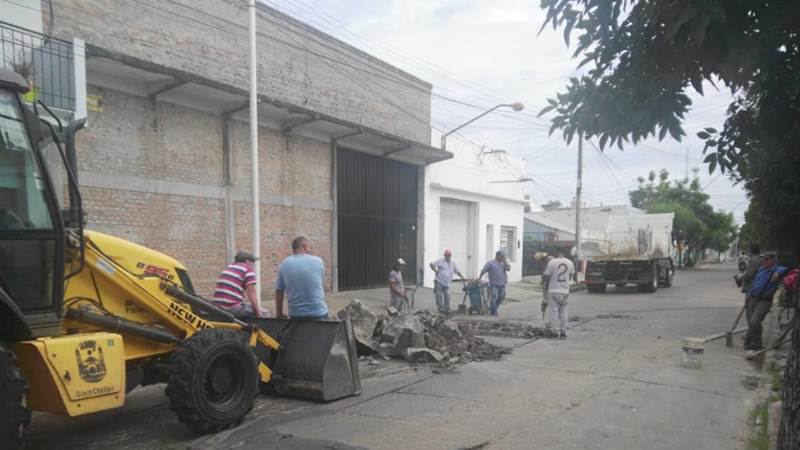 En el caso de la calle Corrientes, la obra de bacheo se ejecuta en el sector comprendido por calles Ángel Soto y 25 de Mayo. Los operarios levantan las lozas y después las reemplazan por nuevos paños de hormigón.
