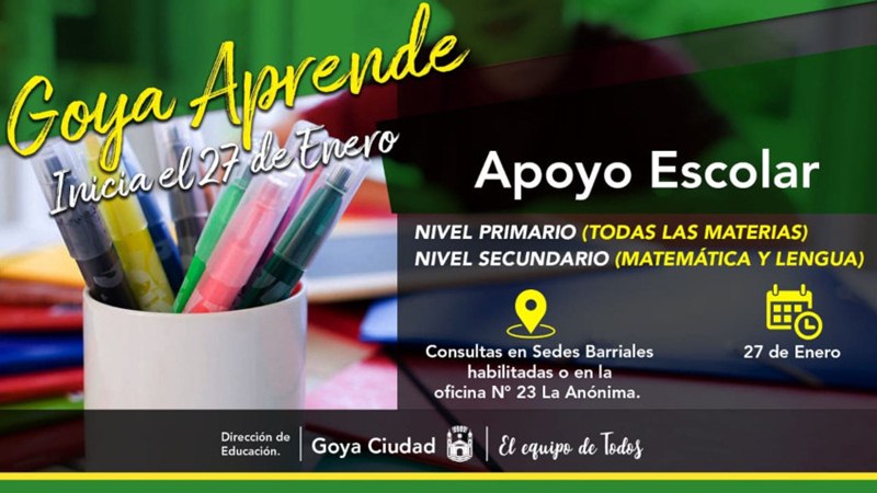 Con el propósito de brindar apoyo escolar a los estudiantes de los niveles primario y secundario, la Direccion de Educación informo que desde la próxima semana se pone en marcha el programa “Goya Aprende”