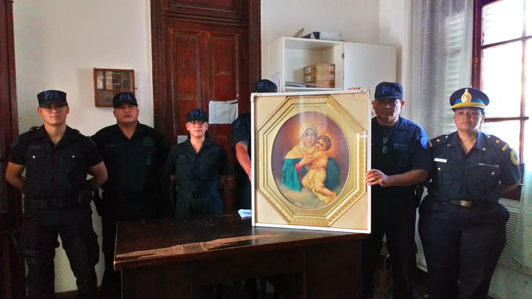 La imagen de la virgen de Schoensttat visita la delegación de la policía federal Argentina