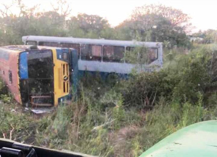 Dos colectivos truchos tumbaron y por suerte no mataron a nadie