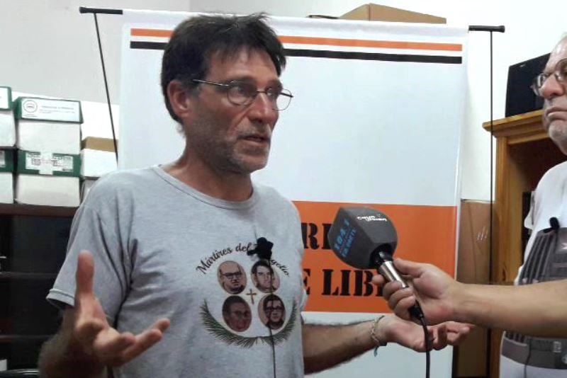 El padre Francisco ‘Paco’ Olveira es uno de los sacerdotes católicos más conocidos en el país por revelarse ante el gobierno de Macri, defendiendo los intereses de los más desventajados. Integra el grupo de opción por los pobres y visitó este sábado al ex concejal goyano Ariel Pereira, que está detenido por un caso que las organizaciones de DDHH catalogaron como «persecución política».