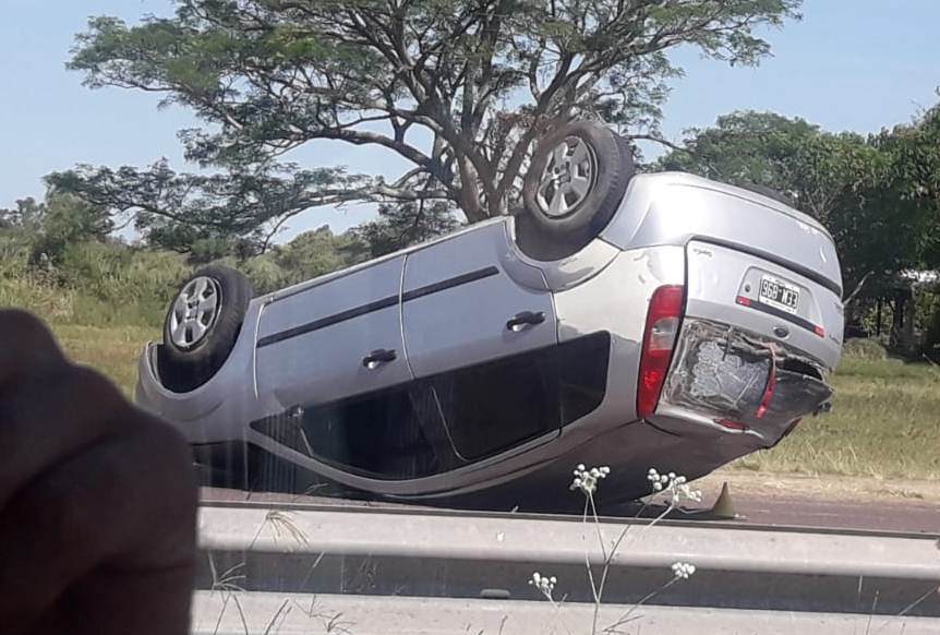 Un Goyano tumbo el auto en el acceso norte de Santa Lucia tras chocar guarda raid