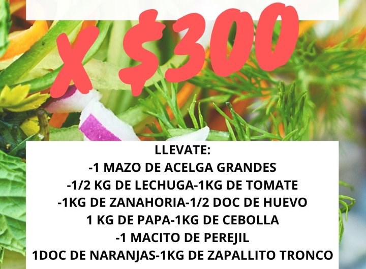 Se recuerda que se está tomando pedidos de Bolsones Saludables: Alrededor de 10 kg de verduras y hortalizas producidas por agricultores familiares del Departamento Goya, a solo $ 300. Los pedidos se reservan hasta el día jueves, vía whatsApp a los N°: 3777528847 o al 3777606881. Cada pedido se retira y abona por Galpón ubicado x calle J. E. Martínez 73 (entre 9 de julio y J. J. Rolón), pegado a oficina INVICO.