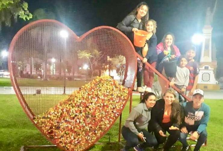 Colocan un corazón gigante en la Plaza principal para juntar tapitas para el Garrahan