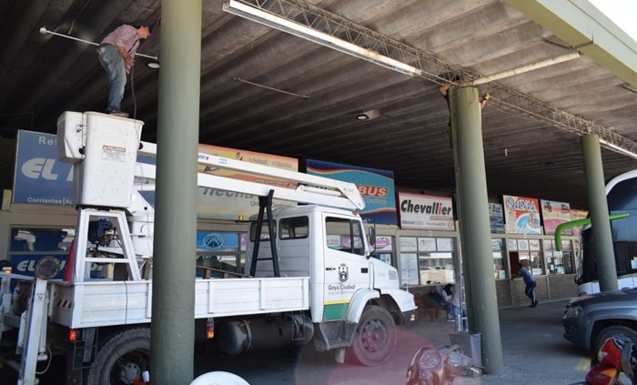 En virtud de la época de gran demanda turística desde y hacia nuestra ciudad la Municipalidad de Goya, a través de la Dirección de Servicios dio inicio a la tarea de mejoramiento del sistema lumínico de la Estación Terminal de Ómnibus. El trabajo que realizan los trabajadores de la Municipalidad, es cambiar el sistema de alumbrado, por uno de iluminación led, que traerá una potenciada manera de alumbrar el lugar, dado que este el portal principal de ingreso a nuestra ciudad.
