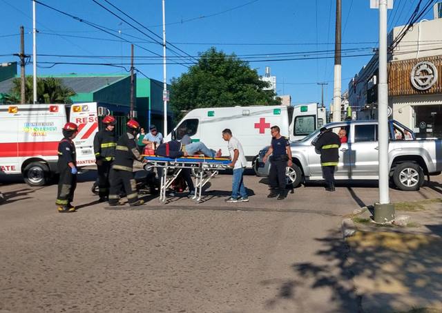 Promediando las 8 de la mañana en la intersección de las calle San Martín y Mitre un hombre a bordo de una motocicleta brava 110CC debió ser asistido por bomberos voluntarios al protagonizar accidente de tránsito con una camioneta Volkswagen Amarok. Fue trasladado al hospital regional en ambulancia.