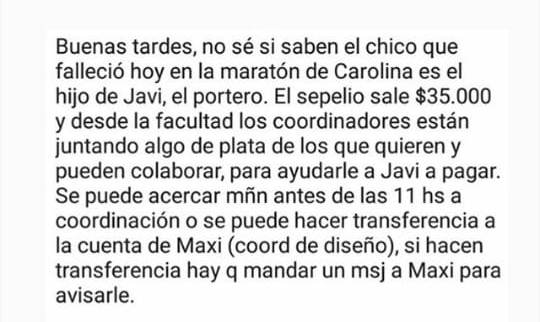 En paralelo, se inició una campaña para ayudar al padre del chico fallecido, quien es portero de una institución educativa y requiere fondos para costear el sepelio de Nicolás.