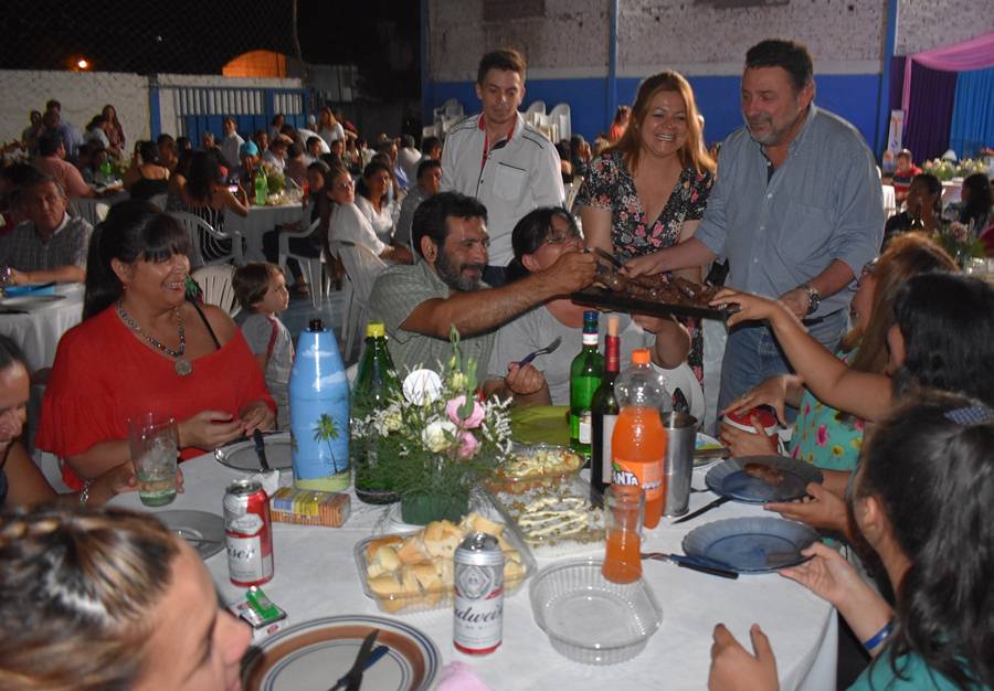 La velada comenzó a las 22:00 hs con el tradicional asado a la estaca, donde los funcionarios mostraron sus dotes de mozo, en este sentido el intendente expresó agradecimiento a todos los trabajadores y dijo: yo no soy más ni menos que nadie, soy un compañero más de trabajo que me toca circunstancialmente dirigir el municipio y les deseo Feliz día para todos.