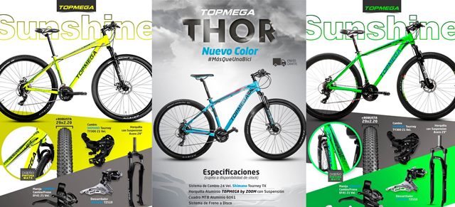 Pasa por su local en Tucuman 327 y llévate una espectacular TopMega Sunshine R29 con sistemas de cambio Shimano 21vel. A tan solo $18.500 o una TopMega Thor R29 sistema de cambio Shimano 24vel. a tan solo $23.500. Acércate y solicita tu crédito solo con tu recibo de sueldo y la empezas a pagar en ENERO 2020.