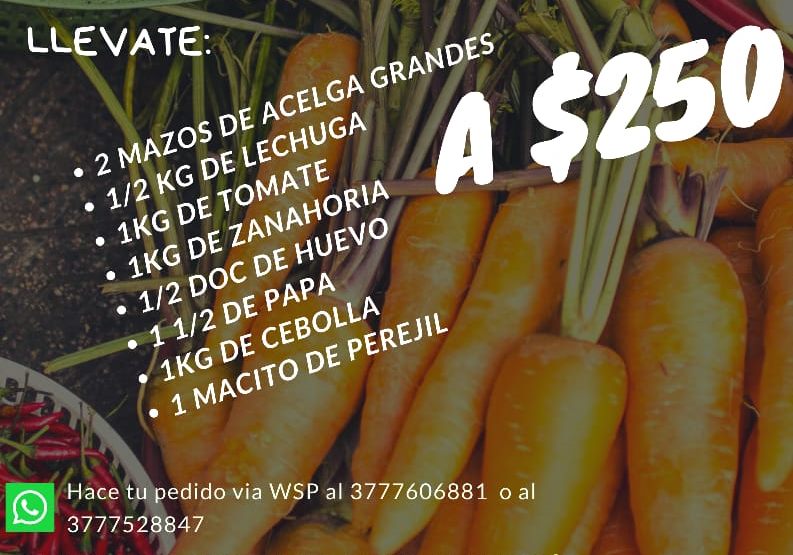 El bolsón contiene más de 8 kilogramos de verduras frescas, a un valor de $ 250, oo se puede reservar hasta el jueves al medio dia, a los siguientes números, vía wasap 3777606881 y 3777528847 y los pasas a retirar el viernes desde las 8 y hasta las 11 y 30 horas por el Predio del Club La Bahía, en Piragine Niveyro 150.