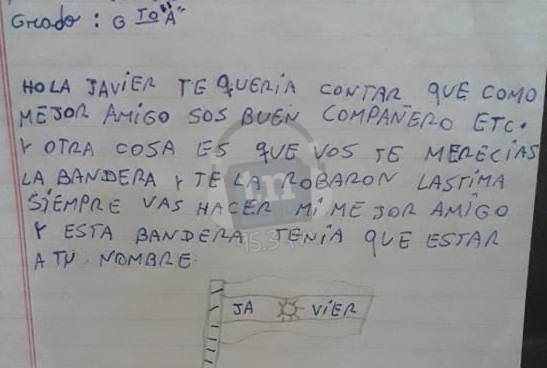 El hecho sucedió el año pasado en la escuela normal en el curso de quinto grado, cuando en el mes de noviembre procedieron a elegir quienes llevarian la bandera de ceremonia y de la provincia. El primero se elige por mejor promedio y el segundo por votación de los alumnos del curso como mejor compañero. Roxana Cuggiardi y Javier Barrios padres del niño denunciaron a la escuela por discriminación, ya que su hijo había sido votado como mejor compañero para ocupar la bandera, pero la docente lo descarto porque supuestamente ocuparía el de mejor promedio, pero finalmente se quedó sin nada.