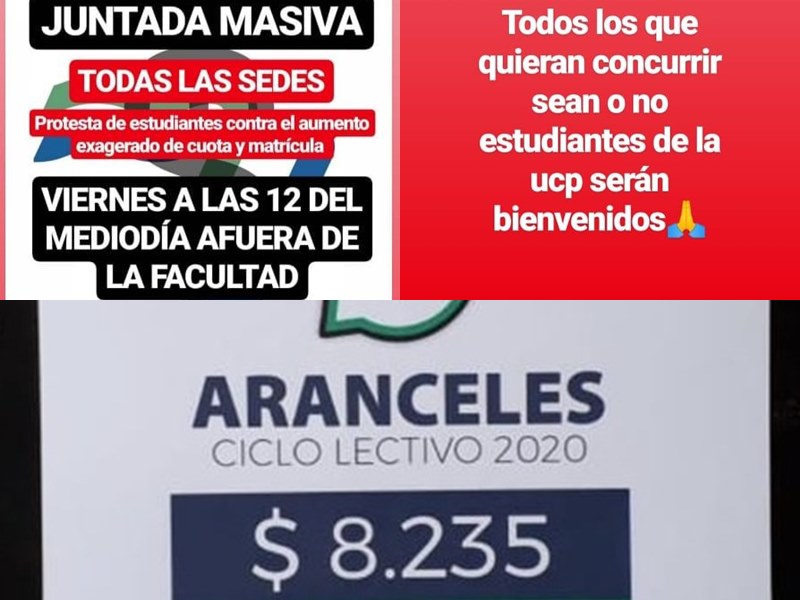 Por el exorbitante aumento de la cuota y matricula a estudiantes de la Universidad de la Cuenca del Plata Goya, estudiantes convocan a una marcha frente al establecimiento este viernes a las 12 hs. “Están aplicando e imponiendo aumentos desmedidos exagerados y ambiciosos a la cuota mensual para la cursada de los alumnos, ya está el valor determinando que rige a partir de Enero que será de 8.235 pesos al mes, hasta mediados de Junio donde volverán a aumentar, $ 2535 hay mucha desesperacion-desason-descontento-angustia-rabia-impotencia-lagrimas”, expresaron a TNGoya.