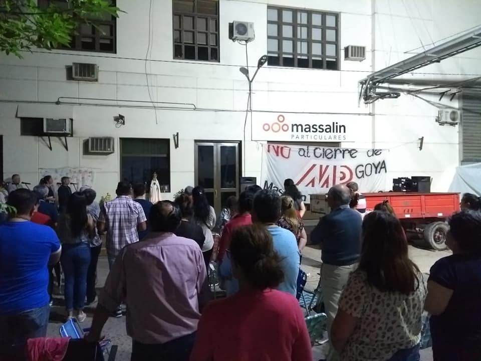 El clima de incertidumbre persiste desde el pasado lunes 21, cuando Massalin Particulares comunicó a los trabajadores que cerraría sus puertas en Goya. A partir de aquel día y hasta ahora, continúan las gestiones por parte de autoridades comunales, provinciales, nacionales y gremiales. Pero además, empleados, familiares y pobladores en general rezan frente a la fábrica y un grupo, inclusive llevó la plegaria hasta la Basílica de Itatí.