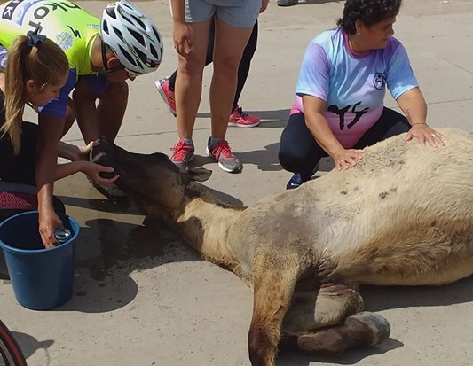 En la siesta del viernes un caballo cayó desplomado, cansado y enfermo de tanto maltrato. Ocurrió en Avenida Neustadt y San Juan. Transeúntes debieron asistirlo, los dueños del animal quisieron llevarlo a al arrastras, pero lo impidieron. Además una mujer iba denunciar por maltrato animal ante sede policial.
