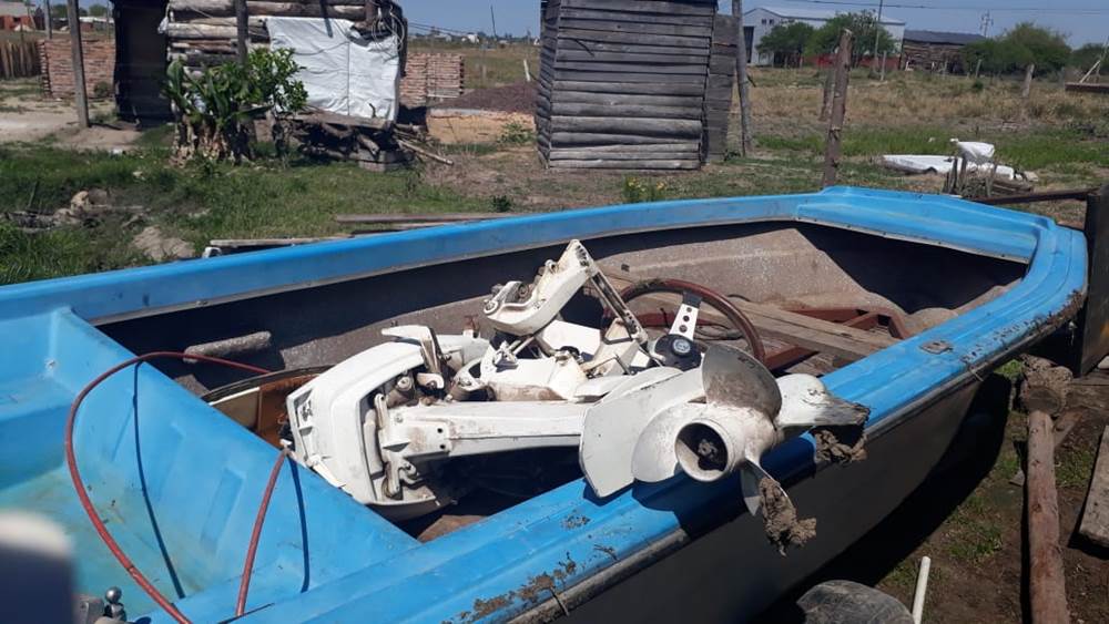 En Santa Lucía a las 11hrs del martes, se realizó allanamiento conforme a Causa CENTURIÓN GASTÓN, DENUNCIA P/SUP ROBO CALIFICADO, con intervencion del JUZGADO N3 GOYA. se procedió al secuestro en el barrio Sagrado Corazón una lancha con motor Johnson 35 hp marca Yacireta. Esta fue sustraída hace 2 meses zona Ejido norte del Galpón Cesar Sagario. Hay una persona apellido Pozzer detenida. IMAGENES