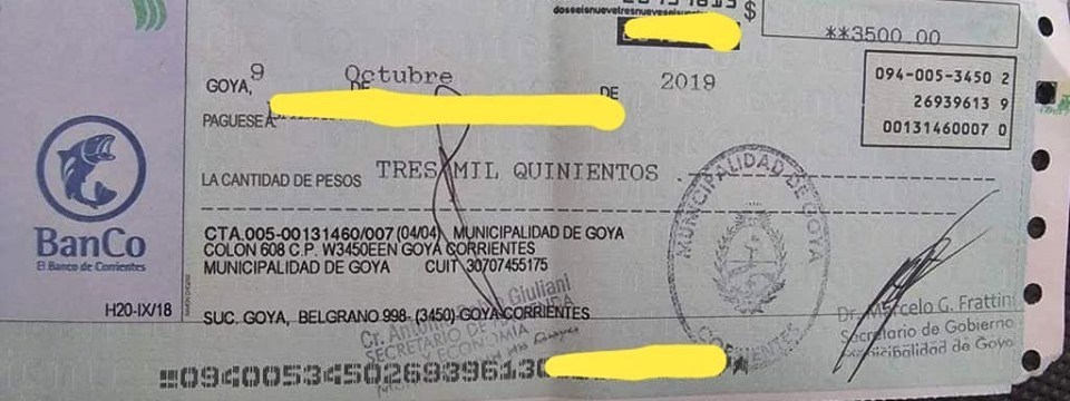 Así lo denuncio cansada una esposa, quien envió a TNGoya la foto del cheque que cobraron por un monto de $3.500. El enojo surgió porque el Intendente habría prometido aumento para este mes, pero ahora les dijeron que se daría para después de las elecciones.