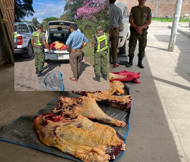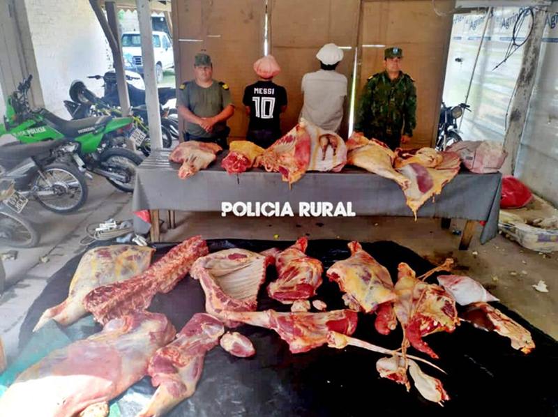 Llevaban 200 kilos de carne y fueron interceptados por el PRIAR Goya luego de una persecución. Faenaron al animal sin tener los controles sanitarios y se investiga si cometieron hurto.