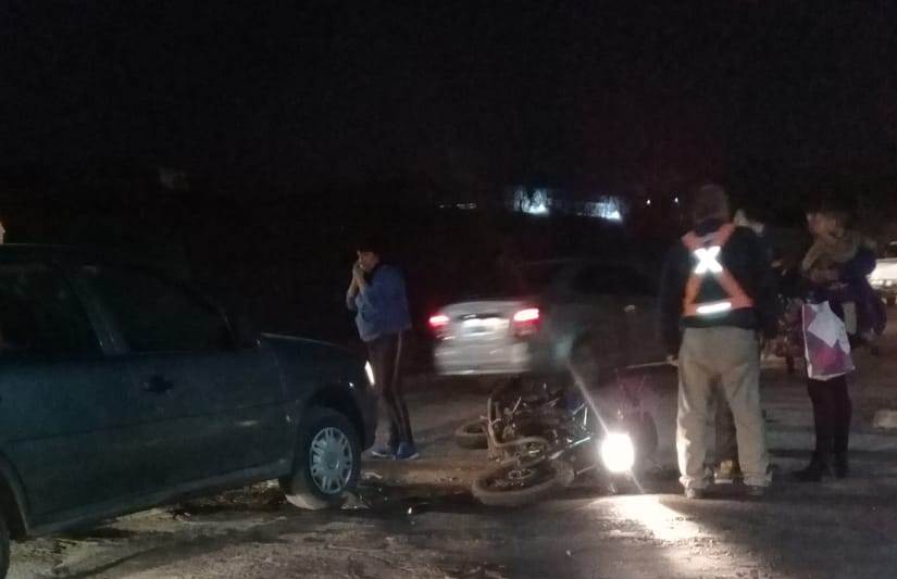 El hecho sucedió alrededor de las 20.15 del viernes cuando colisionaron un auto marca VW GOL POWER y una moto 110 CC en la que se trasladaban tres personas un matrimonio, ella embarazada y un nene de dos años en la intersección de las calles Cabral y Tucumán. Asistieron al lugar personal de transito de la municipalidad de Goya y fueron trasladados al hospital regional.