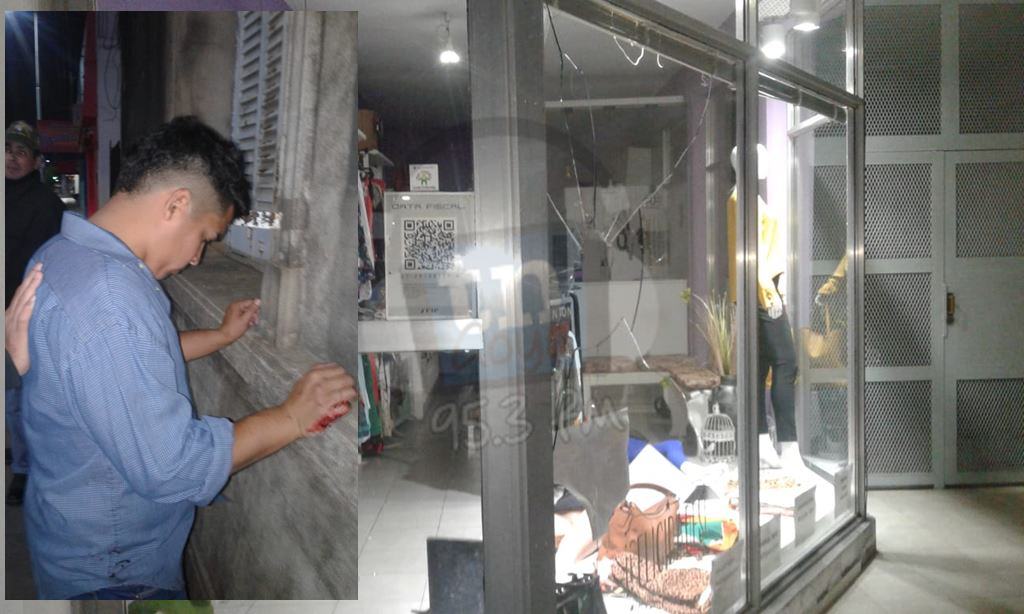 Un sujeto fue detenido por un guardia de seguridad esta madrugada. El hecho ocurrió luego de romper la vidriera de una tienda ubicada por calle Colon entre Juan E. Martínez y Ejercito Argentino. Con un elemento rompió el vidrio y comenzó a acopiar ropas del comercio, fue sorprendido y detenido. IMAGENES EXCLUSIVAS
