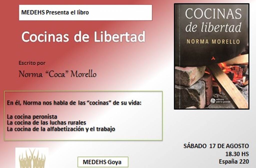 La autora Norma “Coca” Morello lo presentará este sábado 17 de agosto a las 18.30 horas en la sede de MEDHES, ubicada en España 220. En esta, su segunda obra, la escritora plantea tres temáticas que constituyen su historia militante: “La cocina peronista”, “La cocina de las luchas rurales” y “La cocina de la alfabetización y el trabajo”.