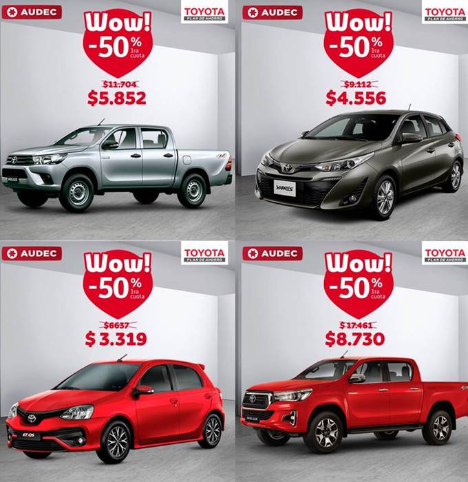 Toyota Audec el concesionario oficial de Corrientes quieren que tengas tu 0km, y para eso bajamos las cuotas, y tenemos increíbles beneficios para esta última semana del mes, si tenes un usado o un capital nosotros tenemos la cuota y el auto que buscas.