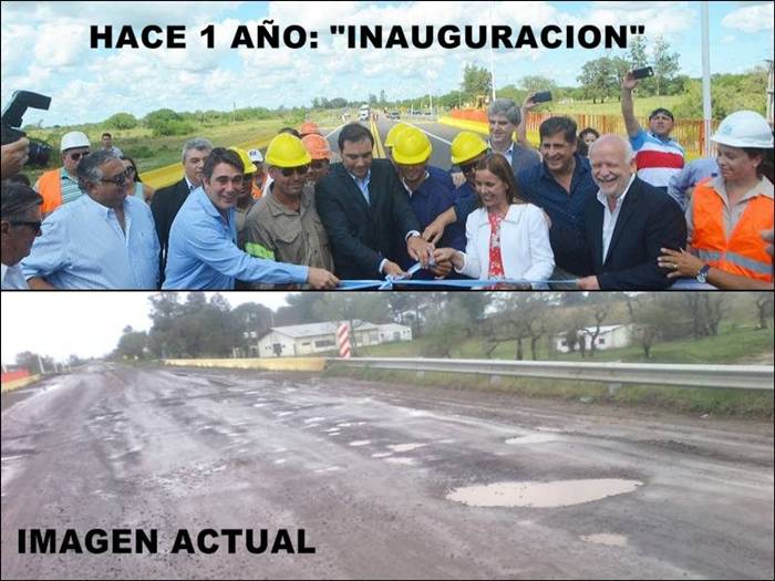 El puente que tuvo un costo de $32.000.000 y que fuera inaugurado en enero del 2018 por el Intendente de Goya Ignacio Osella, acompañado por el ex Administrador General de Vialidad Nacional Ing. Javier Iguacel, la Gerente Regional NEA de Vialidad Nacional Lic. Ingrid Jetter y actual candidata a diputada nacional por Cambiemos, no duro un año ya que comenzó un proceso de deterioro grave. La imagen del puente es usada en los spot de campaña presidencial de Macri. Ingresando a la nota podrá ver el video del estado actual del lugar.