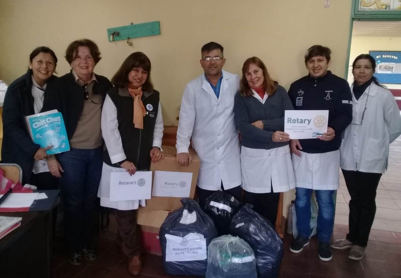 Como otras instituciones de Goya, el Rotary Club acercó también su aporte solidario a escuelas de la zona rural y las ubicadas en la zona del Puerto Exterior. Ropas de abrigo para mitigar los intensos fríos, libros de textos y agua mineral, fueron recibidas con gran beneplácito por alumnos y docentes de los distintos establecimientos educativos.