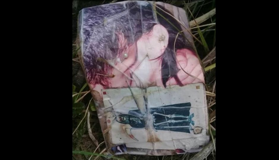 "Como se puede interpretar hallar una foto de dos personas besándose junto a una imagen de San La Muerte pinchada con alfiler, esto se encontró en el Cementerio La Soledad de Goya. ¿Qué sería? ¿Amarre de amor?, comúnmente como decimos aquí “payé”, o ¿algún maleficio?", narró el cronista de TNGoya Juan Cruz Velasquez en su cuenta de Twitter tras mostrar la impactante imagen.