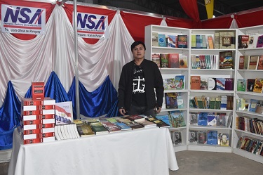 Un imponente stand con los colores distintivos de la Nación guaraní no pasa inadvertido en la Feria del Libro de las Pasiones. Allí, José Monnin, atiende a una incesante ola de visitas que preguntan acerca de las obras. Monnin dice que es muy bien recibida la presencia paraguaya en la Feria y que en el stand ellos muestran la versión que tienen de temas muy sensibles como la Guerra de la Triple Alianza y la Guerra del Chaco, entre otros.