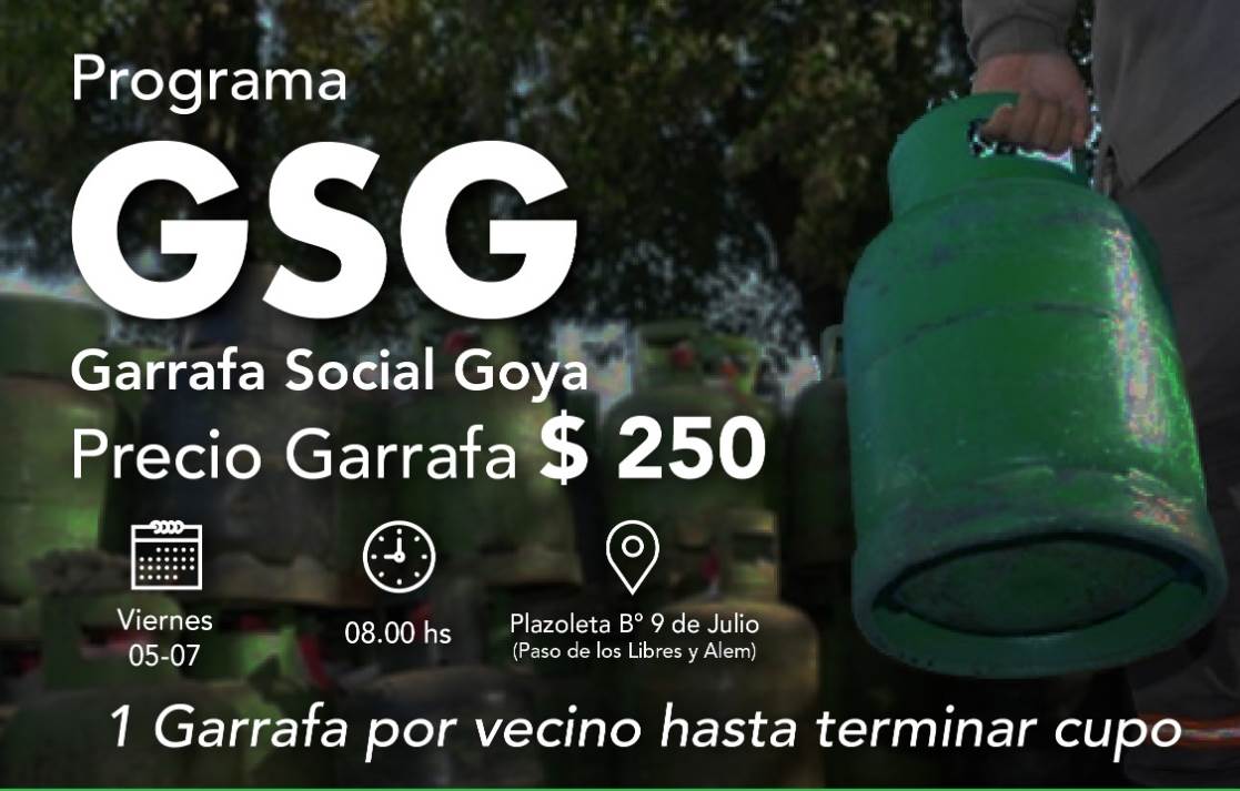 Este programa lo lleva adelante la dirección de Asistencia Social del municipio y tiene como objetivo brindar un precio que comprenda a todos los vecinos. El punto de venta será en plazoleta barrio 9 de julio Paso de los Libres y Alem desde las 8:00 a un valor de 250 pesos, una garrafa por vecino hasta terminar stock.