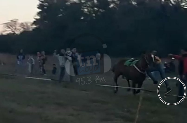 Un jinete oriundo de Santa Lucia de apellido Correa termino con una de sus piernas amputada. El dramático hecho ocurrió en una carrera cuadrera en Gobernador Martínez el día sábado en horas de la tarde. Debido a la gravedad fue trasladado al Hospital de Goya, pero los facultativos médicos nada pudieron hacer para evitar la amputación. Video del momento de la caída.