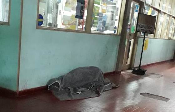 Una mujer envió a TNGoya la imagen de un hombre que paso toda la noche en el suelo de los pasillos del hospital, para poder conseguir un turno con el traumatólogo y dijo, “el señor es una persona que estaba asiendo cola para el traumatólogo se llegó a notar, el ya estaba delante mío yo llegue a las 00 horas, me comento que tiene que ir a amanecer para un turno porque nunca consigue turno ya que el traumatólogo anota solo 7 paciente por día” y agrego “el frío que hizo anoche fue impresionante, así no podemos seguir”.