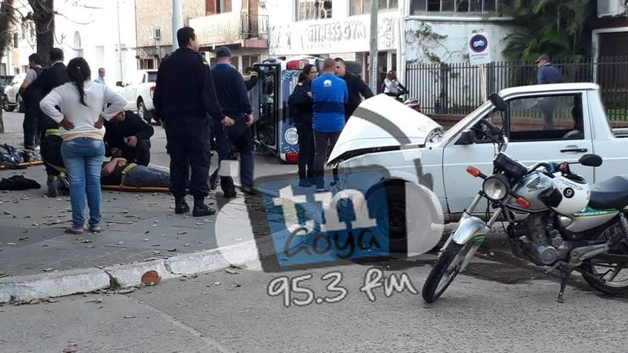 Mañana agitada en la ciudad de Goya, tras el traslado de cinco personas de urgencia al hospital regional, luego de que una camioneta policial Toyota volcara en la intersección de calle 12 de octubre y España, cuando una Saveiro impacta a la camioneta del servicio penitenciario que transitaba por España. Uno de los heridos más graves tiene fractura expuesta en su brazo y es el Cabo de apellido Romero. En la camioneta policial iban 6 policías trasladando a dos detenidos y en la Saveiro 2 personas.