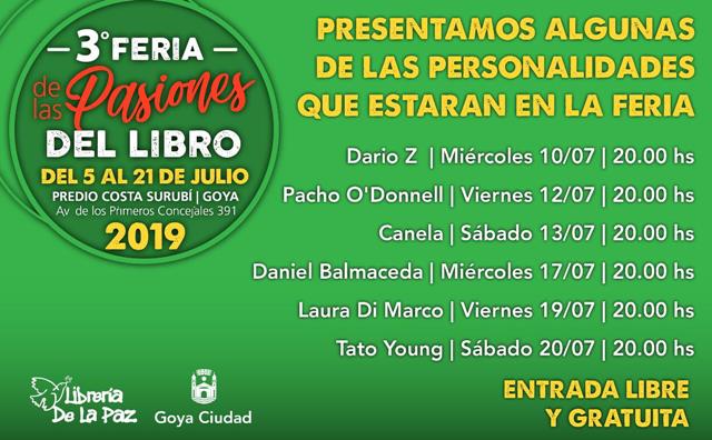 Desde el próximo 5 de julio y durante 17 días la ciudad de Goya, vivirá el acontecimiento cultural más trascendente de la región. Feria que tendrá una multiplicidad de ofertas, no solo literarias, sino de cultura en general, música, teatro, conferencias, disertaciones, presentaciones de destacados y reconocidos autores locales, regionales, nacionales e internacionales.