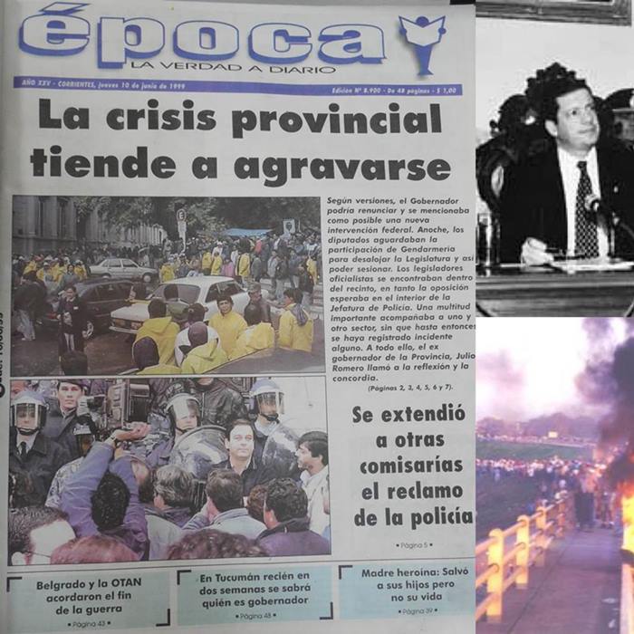 Sin ánimo de ser un relato histórico la siguiente crónica es simplemente una visión en perspectiva, de una vivencia personal y comunitaria en clave periodística de los hechos que impactaron a los correntinos en 1999. El haber tenido como condimento no solo los intereses políticos y económicos de por medio, sino también el obligado encolumnamiento a determinado sector, hizo que la sociedad no pudiera liberarse de los relatos de esa época, y tomara partido, equivocadamente o no, por uno u otro bando. Nadie fue neutral en ese año, y el que lo era, quedaba excluido, relegado o debía irse. Yo lo hice.
