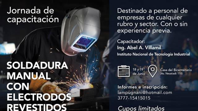 La Municipalidad de Goya a través de la Secretaría de Modernización, Innovación y Desarrollo, organiza una jornada de capacitación en soldadura manual con electrodos revestidos (SMAW), que se realizará los días 18 y 19 de junio en la Casa del Bicentenario. El objetivo de la capacitación es fortalecer el Sector Metalmecánico y Metalúrgico de la provincia, mediante la transferencia de conocimientos referidos a la tecnología de las soldaduras.