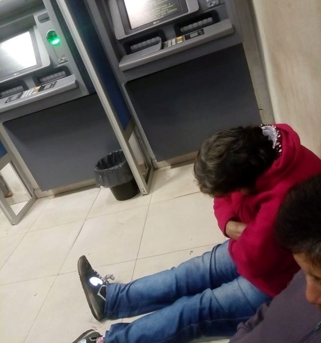 Una abuelita paso toda la noche en el cajero esperando que alguien recargue los mismos