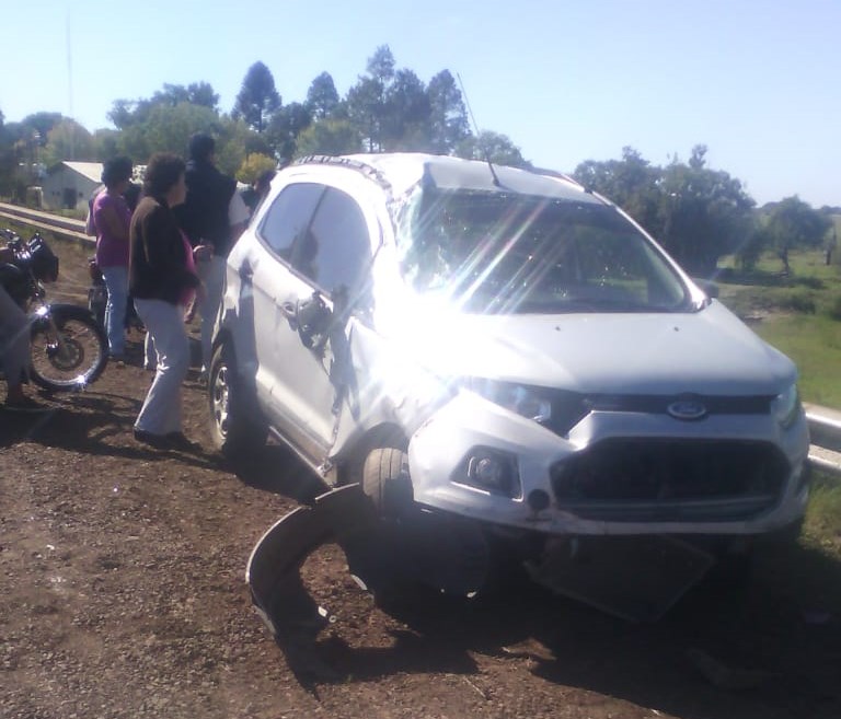 Conductora que sería de Goya e iba a bordo de una camioneta Ford Eco Sport, despista y vuelca en Puente Paso San Juan, cuando se dirigían a la localidad de Esquina, afortunadamente nadie resulto herido. Imágenes de como quedo el rodado. El hecho se registró en la mañana del jueves.