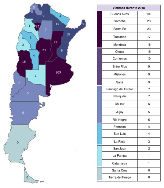El Observatorio de Femicidios del Defensor del Pueblo de la Nación, en su publicación del informe anual de 2018 durante el período comprendido entre el 1º de enero y el 31 de diciembre, relevó 281 femicidios de los cuales 29 son vinculados y 6 son personas Trans.