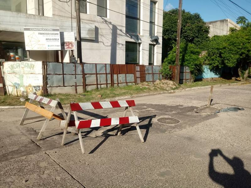 Con unas precarias maderas señalaron el hundimiento de la intersección de las calles Ángel Soto y 12 de Octubre, la que muestra un gran socavamiento por la erosión del agua. El lugar fue vallado y se pide precaución a los automovilistas al circular por la zona.