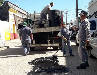 Aprovechando las buenas condiciones climáticas de los últimos días y con pronóstico alentador, la dirección Obras Públicas a cargo del MMO Victor Verdún inició trabajos de bacheo de pequeño y grandes dimensiones con pavimento en las principales avenidas y calles de la ciudad.