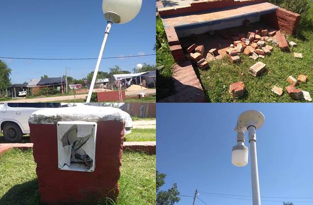 En horas de la noche se produjeron, nuevamente, hechos de vandalismo en espacios públicos de nuestra localidad. Salvajes, que aún no han sido identificados, destruyeron bancos, faroles, tapas de seguridad de los faroles y hasta juegos de la plaza.