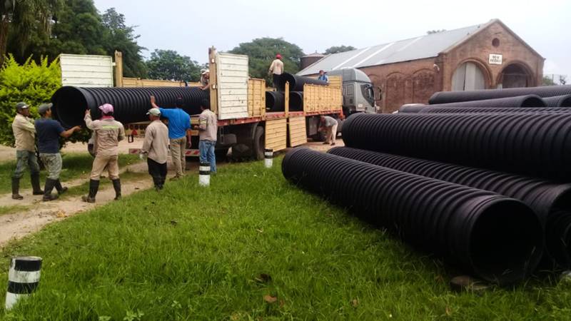 Desde del PRODEGO ,se recibió una partida de cañerías de polietileno de alta densidad de 400 mm y 600 mm de diámetro, para obras pluviales programadas para el año 2019 por Calle José María Soto entre Av. del Trabajo y EX. vias.