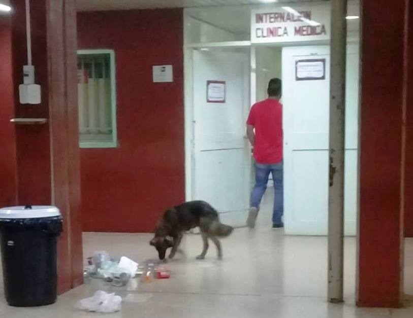 Una imagen que refleja la gravedad de la situación del funcionamiento actual del hospital regional de Goya, donde los animales circulan dentro del nosocomio y revuelven las bolas de basura en los pasillos de internación. Lo cierto es que son millones de pesos los que se destinan a la salud pública en Goya pero parece no importarle a nadie verificar si ese dinero se destina como corresponde.